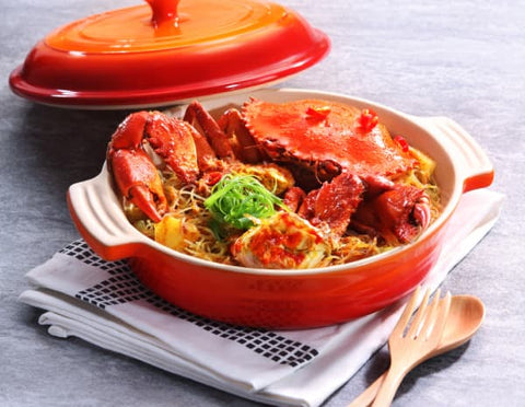 Add bean vermicelli and simmer until sauce is thickened. Transfer to a heated casserole and garnish with red chilli and Chinese parsley.